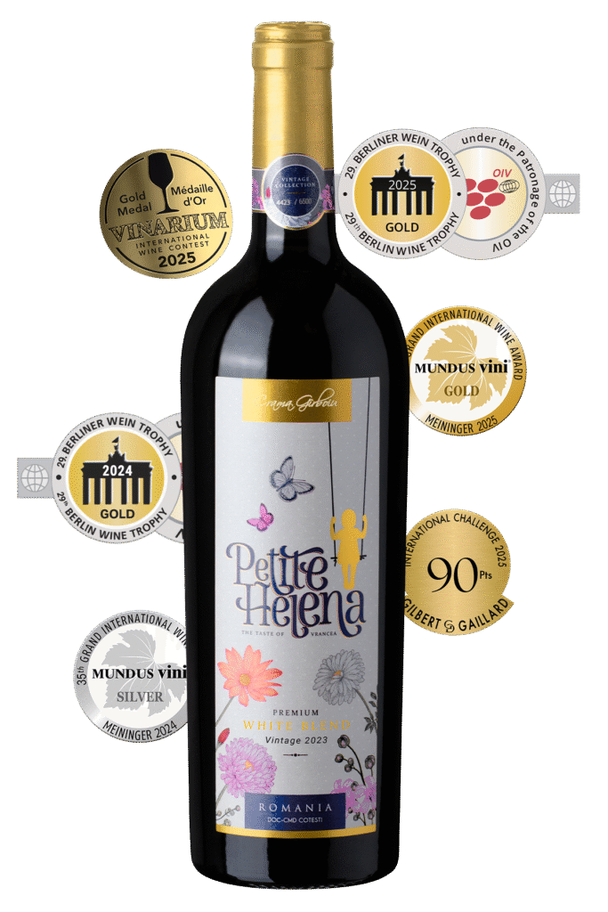 Unul dintre vinurile noastre de renume este Rezerva Familiei Sauvignon Blanc 2009, deținător al distincției „Marea Medalie de Aur” la Concours Mondial de Bruxelles. Acesta este singurul vin din istoria României care a intrat în Topul Revelațiilor Mondiale și este o adevărată mândrie pentru noi. Alături de el, îți punem la dispoziție o întreagă gamă de vinuri românești premiate, de calitate, precum Petite Helena Premium White Blend, Constantin Premium Red Blend, Bacanta Fetească Neagră, Bacanta Syrah Barrique.