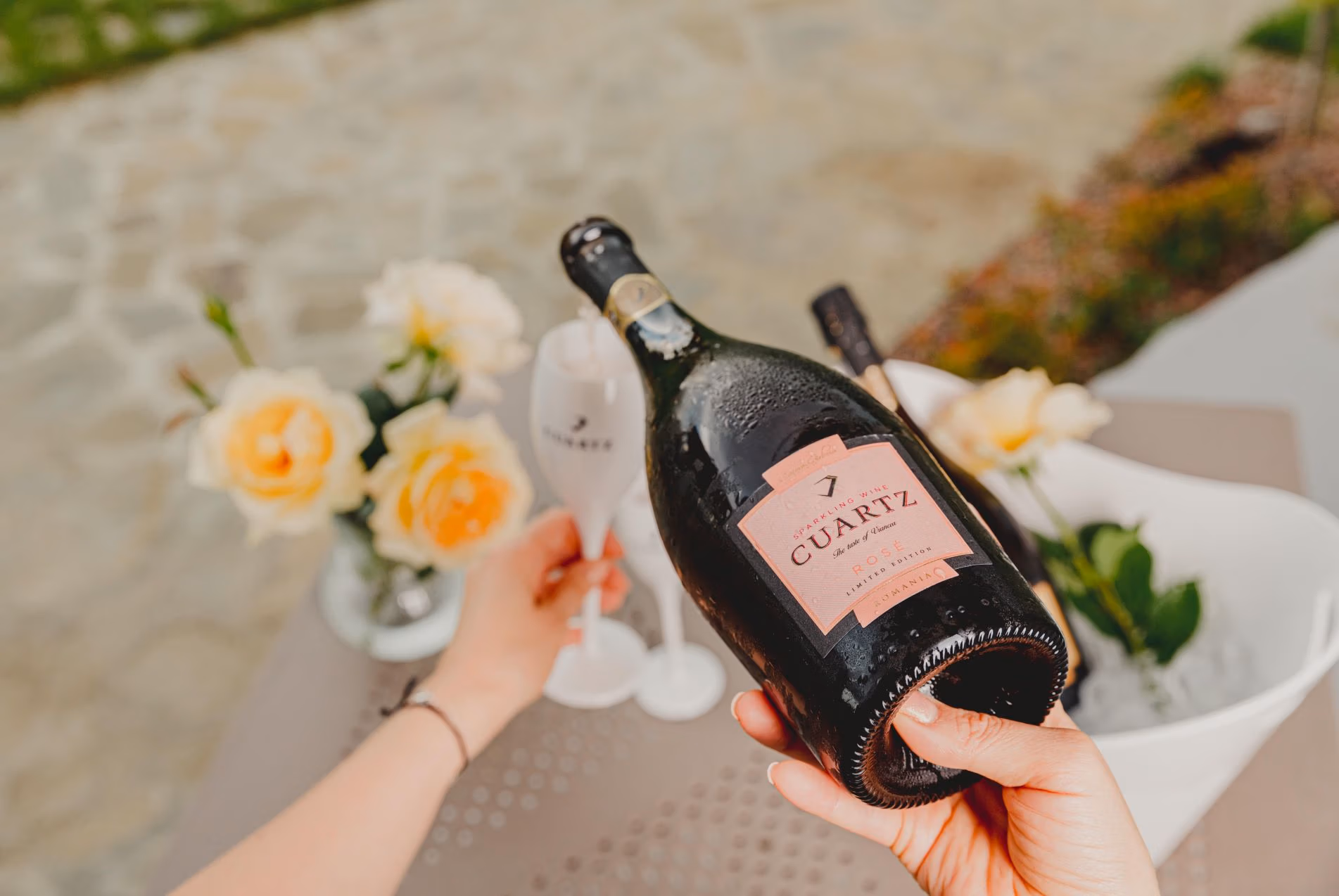 Vinul Spumant este o băutură remarcabila care a cucerit inimile pasionaților de vinuri din întreaga lume. Cu aromele sale fructate și florale, bulele fine și prospețimea sa vibrantă se diferențiază prin eleganța și rafinamentul său. Indiferent dacă optezi pentru Cuartz Alb sau Cuartz Rosé vei reuși să adaugi un strop de eleganță și rafinament ocaziilor speciale sau serilor de relaxare!