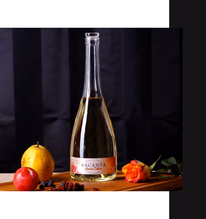 Prospețime, tonuri dulci și o culoare aurie, toate împrumutate din gingășia viței de vie pentru Bacanta Tămâioasă Românească. Un vin cu arome complexe ce redă fidel bogăția stafidelor, datorate strugurilor supuși procesului de deshidratare. Accentele de dulceață de trandafiri se regăsesc din plin atât olfactiv cât și stilizate pe eticheta vinului. O ediție limitată de doar 3000 de sticle și un deliciu pentru cei exigenți.