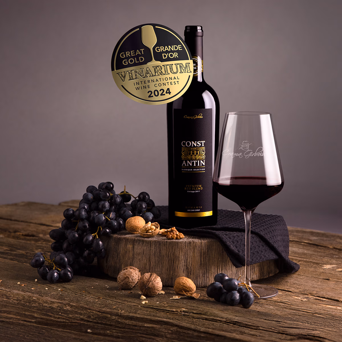 Cea de-a XXI-a ediție a concursului anual de vinuri VINARIUM International Wine Contest și-a anuntat ieri câștigătorii. Cei 47 de jurați au avut de analizat peste 1500 de probe din 26 de țări. Vinurile Cramei Gîrboiu au reusit sa impresioneze juriul exigent si sa castige medalia "Great Gold" cu vinul etalon Constantin Premium Red Blend 2017.