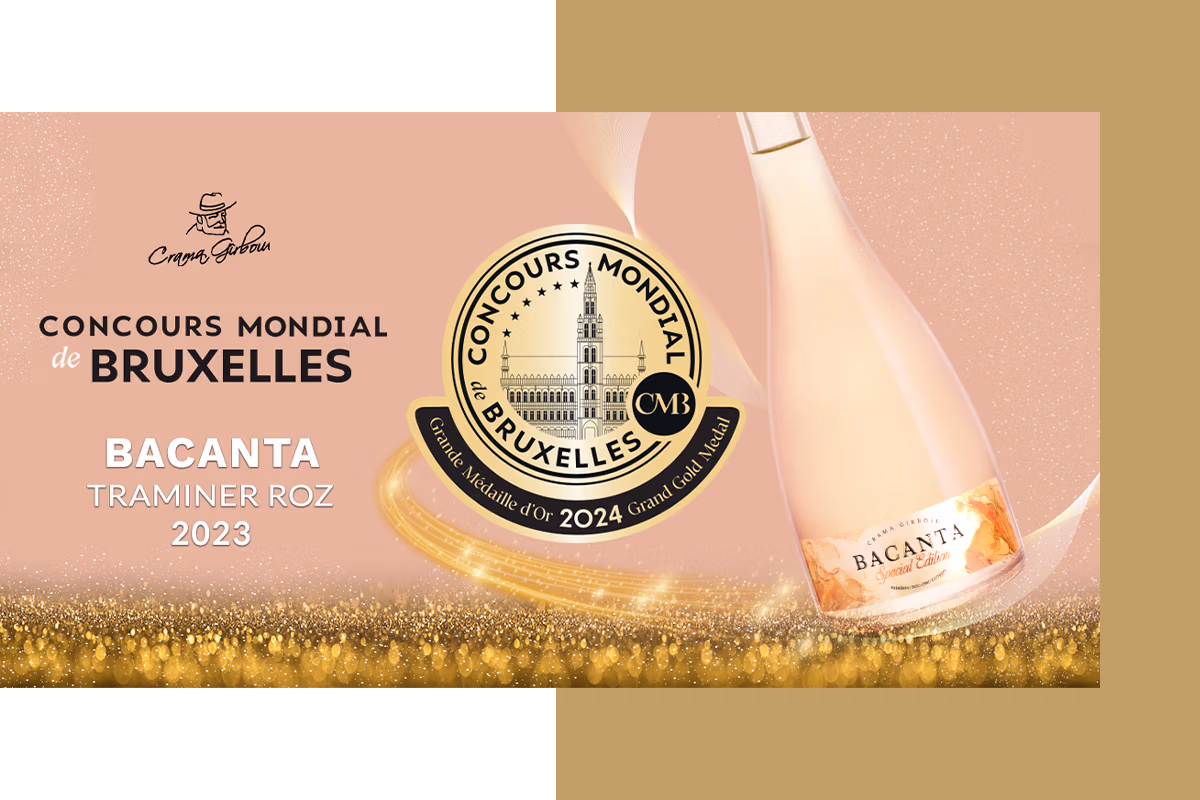 Al doilea vin din portofoliul Cramei Girboiu reușește cea mai mare performanta din România. De aceasta data distincția de Marea Medalie de Aur pentru Bacanta Traminer Roz a fost acordată de către Concurs Mondial de Bruxelles 2024. Obtinut doar in ani favorabili, Traminerul Roz este un soi de strugure care impresioneaza prin aroma sa exotica si aciditatea crocanta.