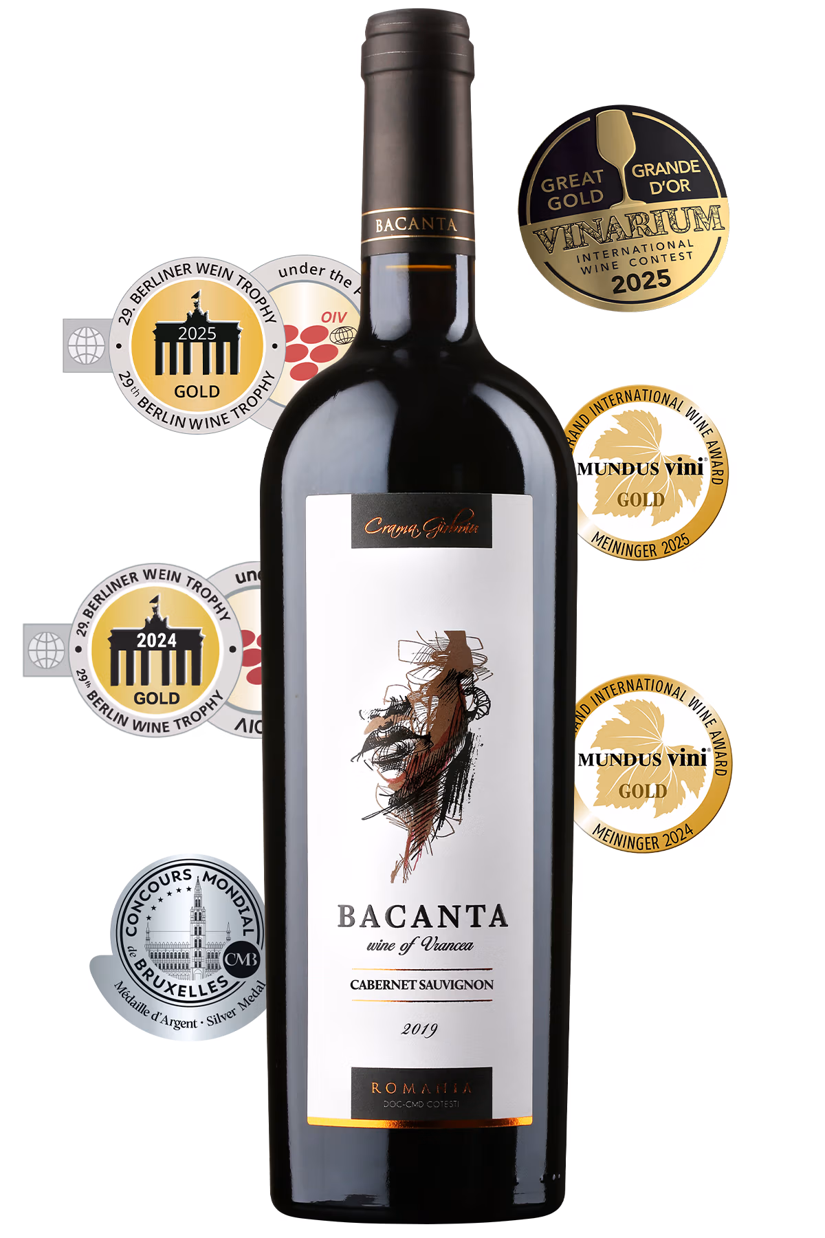🏆 GREAT GOLD – VINARIUM 2025 Bacanta Cabernet Sauvignon – Vin rosu sec este un vin de excepție care s-a alăturat colecției deja consacrate de vinuri roșii premii obținute in DOC Cotești. Cabernet-ul Sauvignon este cunoscut pentru culoarea intensă, structura bogata si pentru aroma inconfundabilă de fructe negre cu o...(vezi mai mult)(ascunde)S-ar putea sa iti placa si...