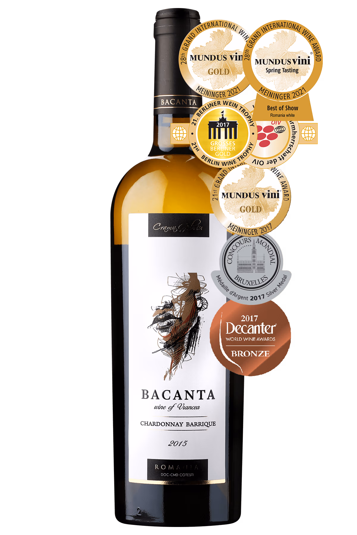 Putem spune ca acest vin Bacanta Chardonnay 2015 este Cel mai bun Chardonnay din Romania? Cu siguranta va prezentam unul din Cele mai Medaliate Chardonnay-uri romanesti, avand dovada multitudinea de distinctii internationale castigate in ultimii ani la concursuri de renume, printre care amintim ultima distinctie castigata, Medalia de AUR la Concursul International MUNDUS VINI 2021, si titlul de „BEST SHOW ROMANIA WHITE” si Medalia de AUR la Berliner Wein Trophy 2016.