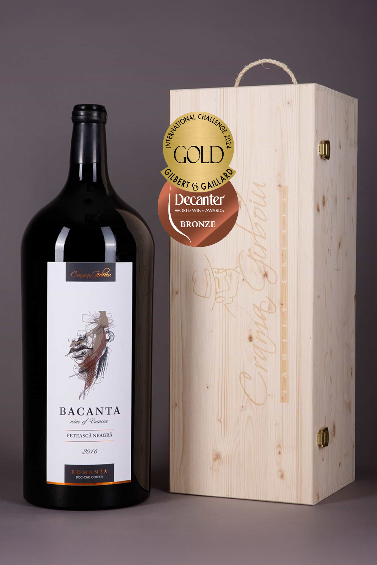 Sticla de 9L este un format imperial rar, destinat celor mai importante ocazii: evenimente de gală, aniversări majore, celebrarea unor momente unice sau cadouri cu adevărat spectaculoase. Prin dimensiunea sa impresionantă, acest vin devine un element central al oricărei mese și o expresie supremă a gamei Bacanta.