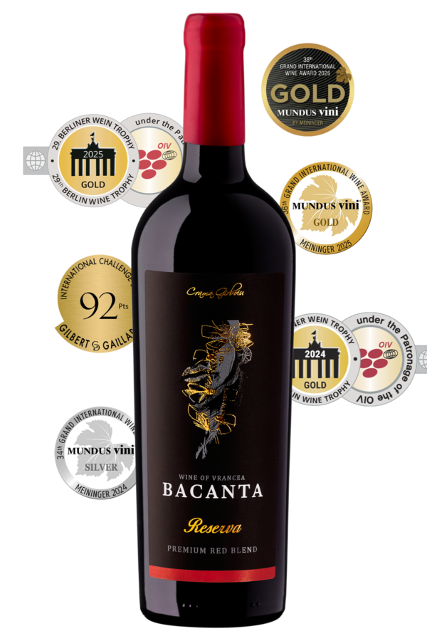 Bacanta Reserva Premium Red Blend este un vin roșu sec premium, obținut din struguri proveniți din parcele atent monitorizate, cu producție controlată și selecție manuală, supuși unei macerații îndelungate pentru extracție optimă de culoare, structură și complexitate, apoi maturat minimum 18 luni în baricuri de stejar și învechit cel puțin 6 luni în sticlă pentru integrarea armonioasă a taninurilor și dezvoltarea profunzimii aromatice.