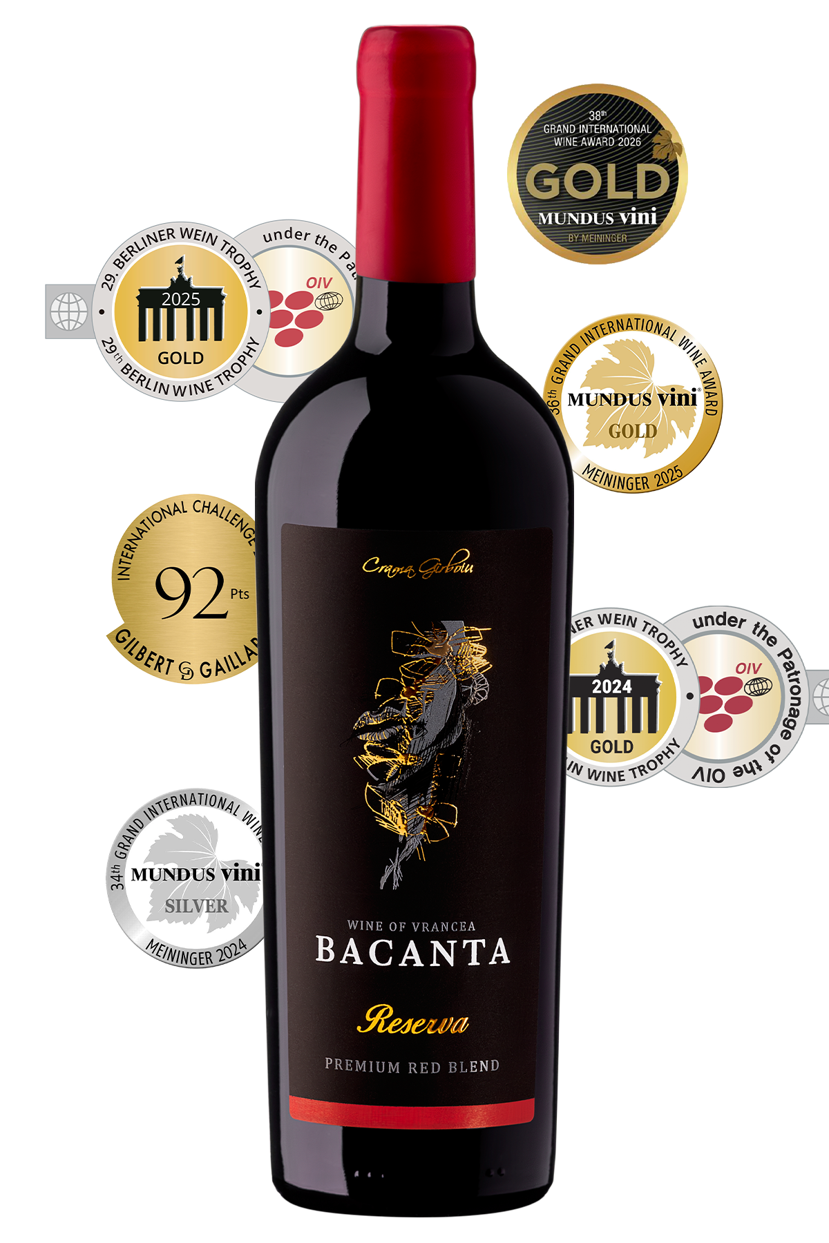 Medalie de Aur – Berliner Wein Trophy 2025, 2024; Medalie de Aur – Mundus Vini 2025; 92 pct. Gilbert&Gaillard 2025