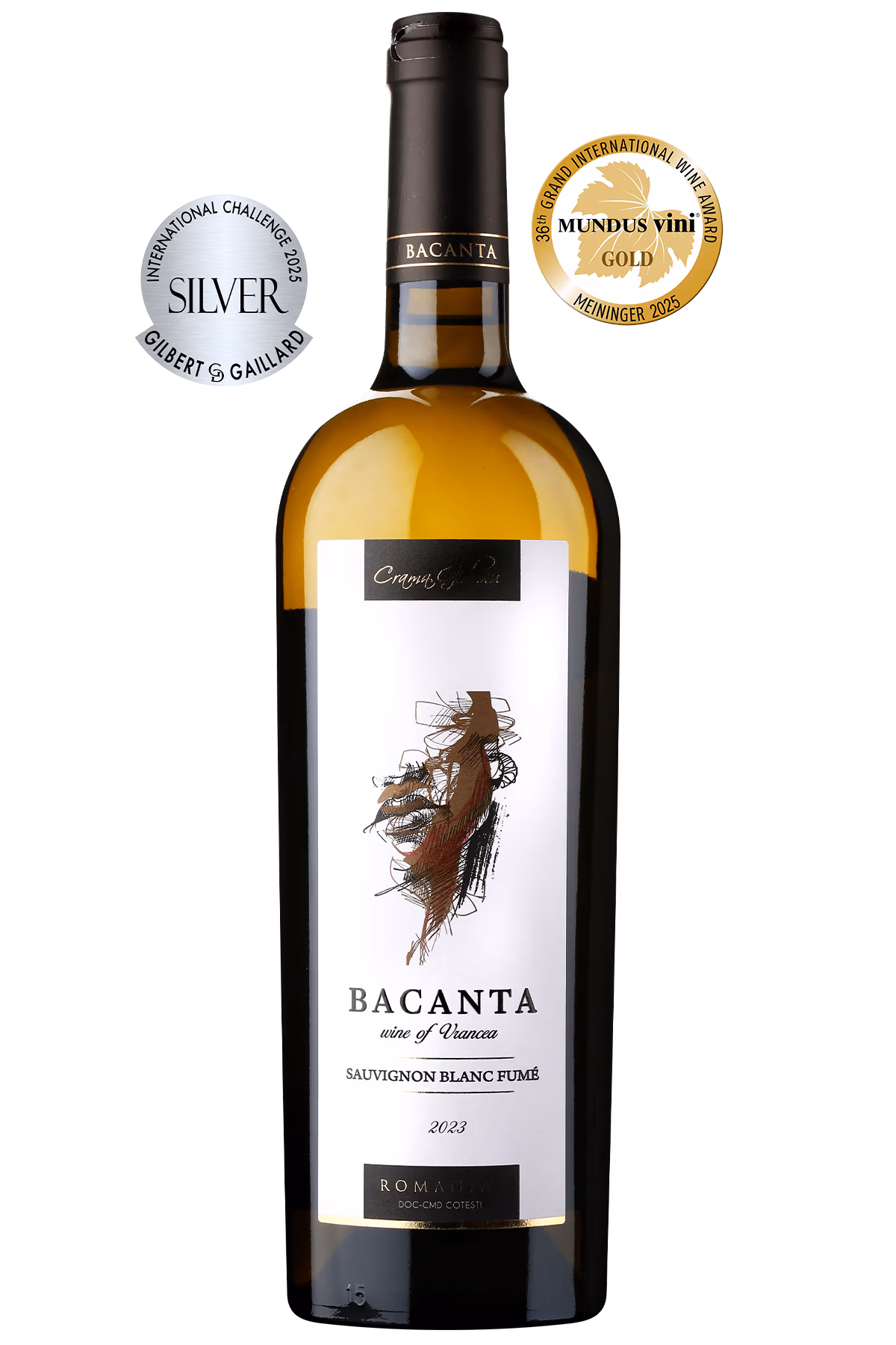 Asemenea mitologiei antice, Bacanta reuseste sa isi insuseasca misterul si opulenta gustului bine definit, intr-o formula demna de originea numelui sau. Cu pasiune ca o preoteasa a vinului, cu adoratie ca o femeie tanara, capricioasa si desfranata, cu gust plin dar seducator Bacanta este o gama de vinuri alese cu intelepciune, soiurile fiind apreciate pentru calitatile si extravaganta lor. Acest Fume este o reinterpretare clasica a soiului Sauvignon Blanc. Aportul adus de fermentarea in baricuri de stejar se regaseste pe deplin in calitatea acestui vin.