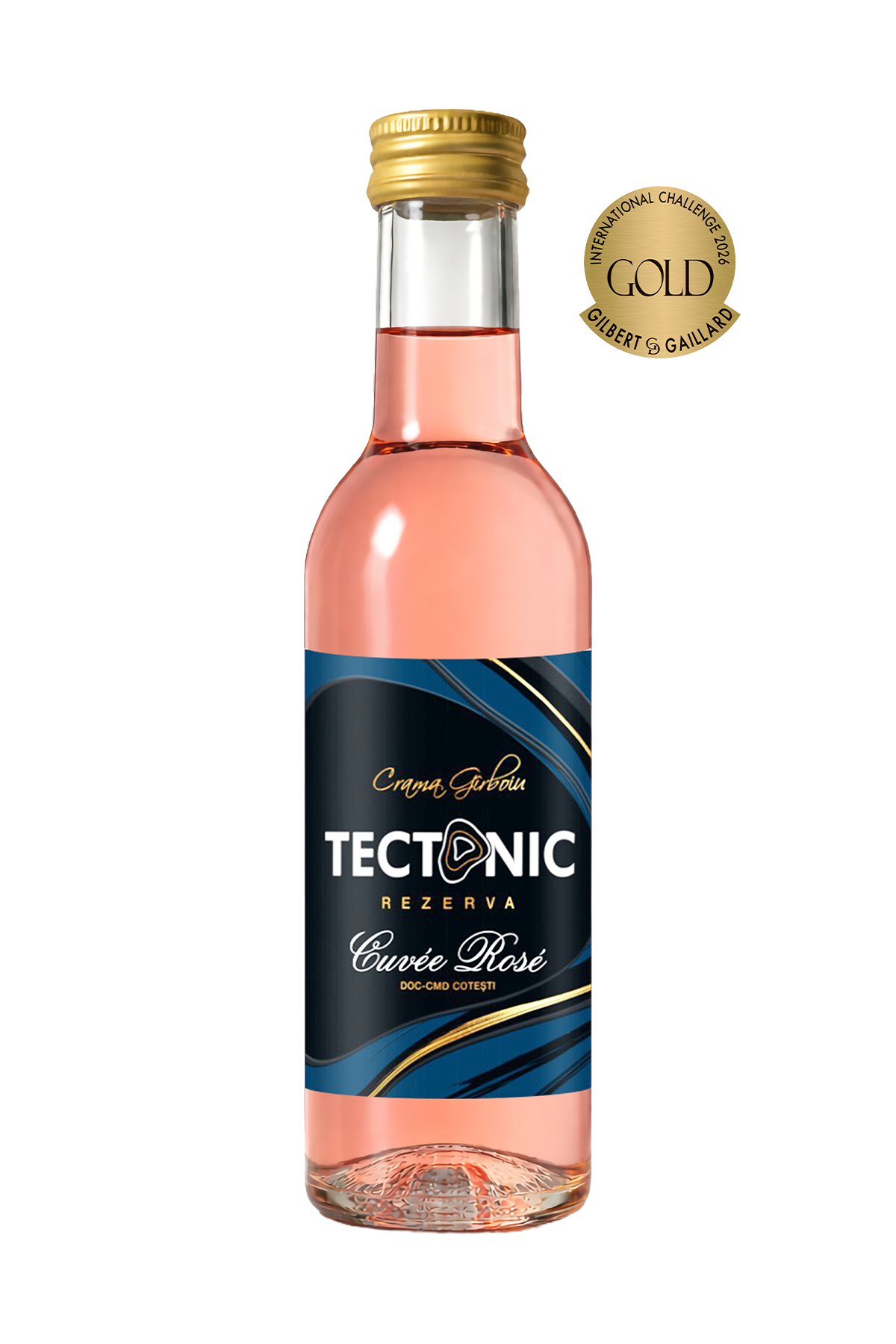 Mini Tectonic Rezerva Cuvee Rosé – Vin rosé sec 0,187 L este un rosé premium, creat pentru cei care caută mai mult decât prospețime: un vin cu structură, finețe și personalitate. Parte din gama Tectonic, această Cuvée Rosé exprimă un stil sofisticat, îmbinând delicatețea unui rosé modern cu profunzimea unei rezerve atent construite.
