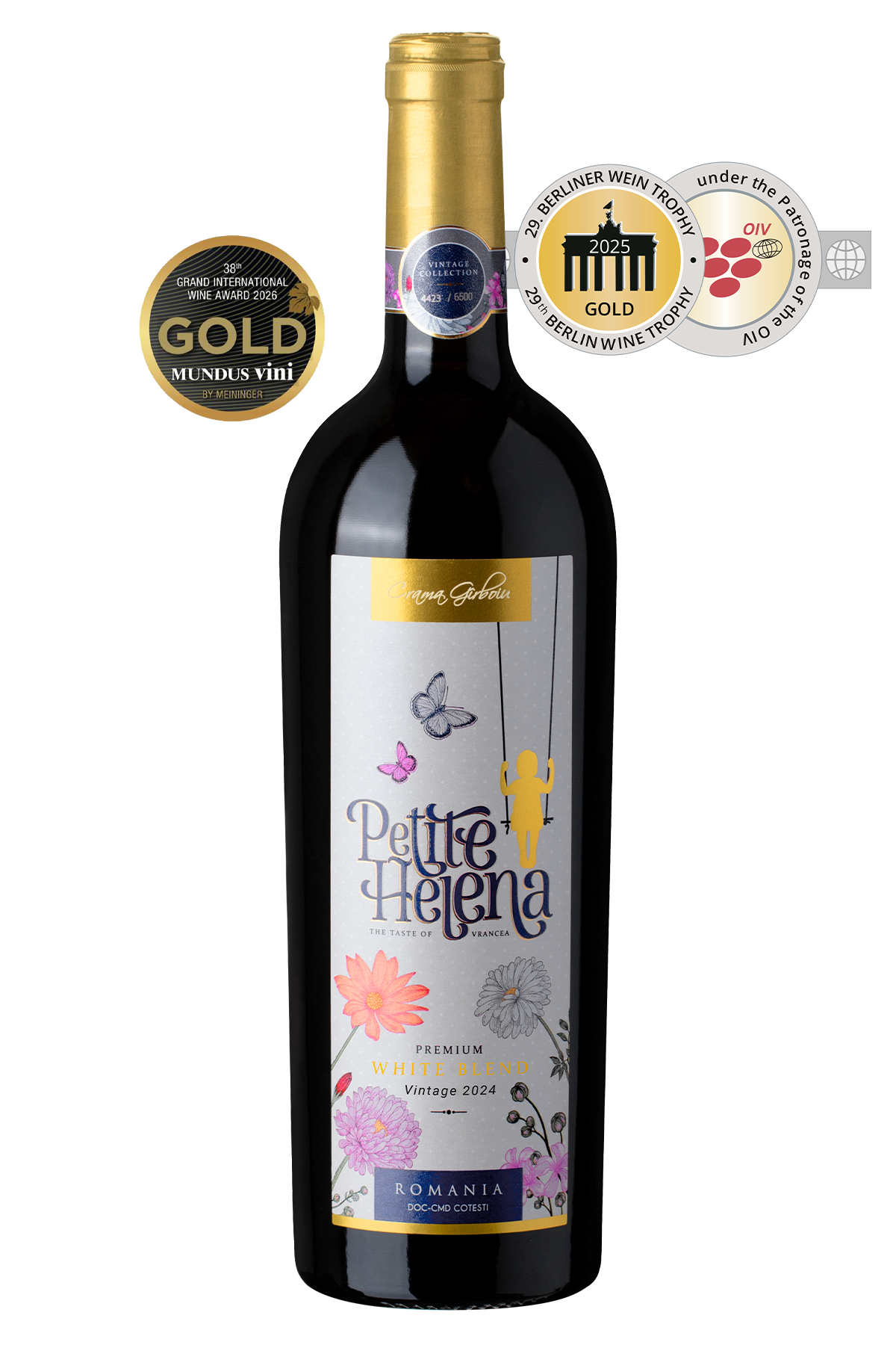 Petite Helena Premium White Blend este un vin alb sec premium, îmbuteliat la 0.75L, produs în Vrancea, România, de Crama Girboiu.