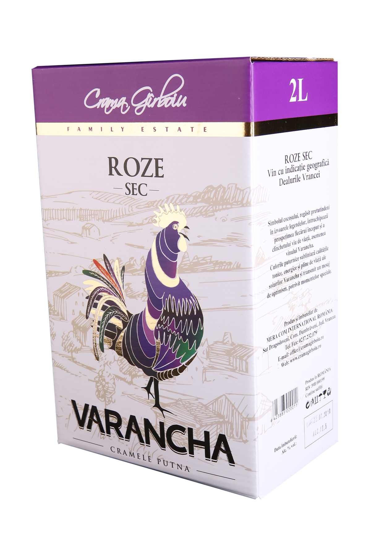 Cauti vin ieftin si bun? Varancha Rose Bag in box 2L – Vin rose sec se remarca prin culoarea sa superba. La degustare imbie arome intense si proaspete de macese si citrice cu note de fructe rosii, capsune, zmeura si coacaze. Acest vin sec este pe deplin un vin cu...(vezi mai mult)(ascunde)S-ar putea sa iti placa si...