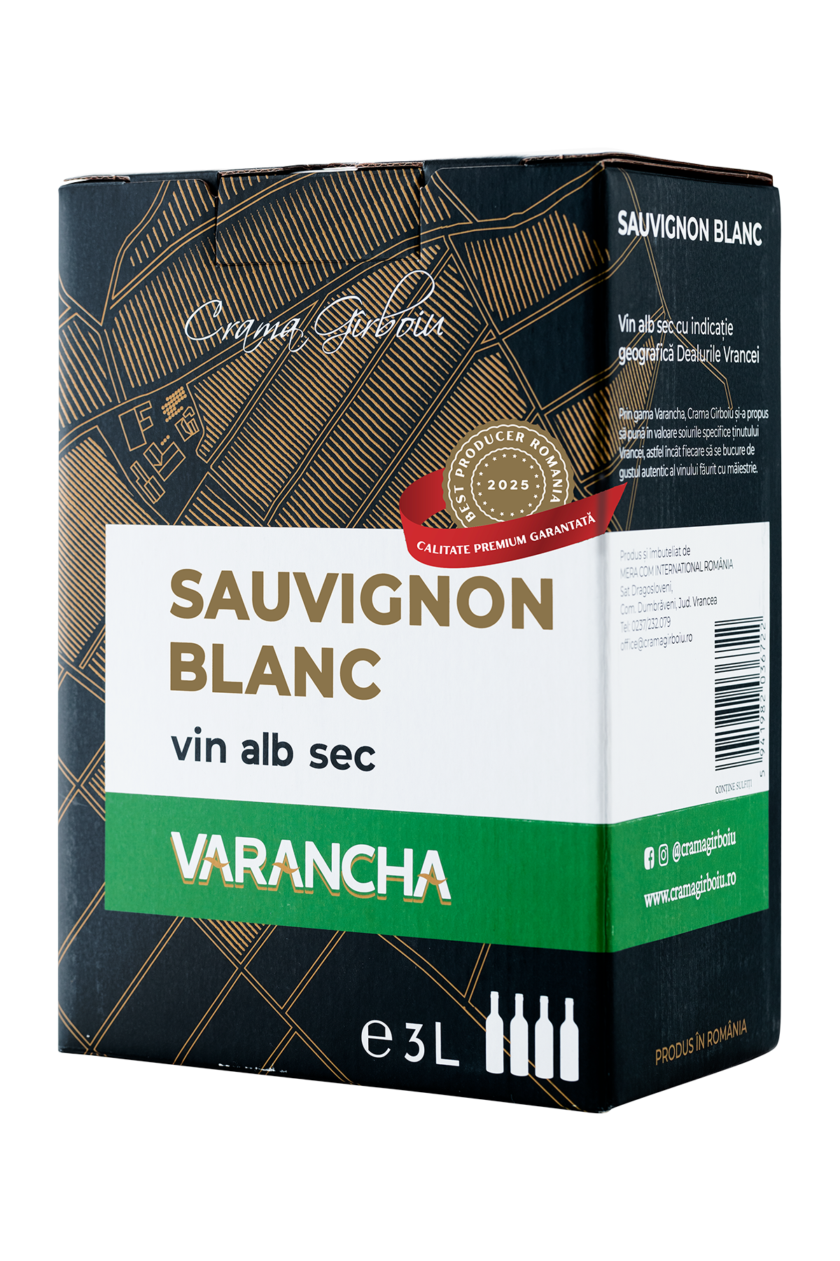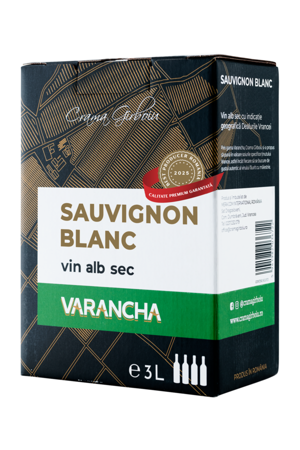 Varancha Sauvignon Blanc Bag in box 3L – Vin alb sec de culoare galben-verzui, cu o aroma exotica de ananas, pomelo si note discrete de ardei gras. Corpolent cu o aciditate crocanta, intesn si echilibrat de un post gust fructat si revigorant.