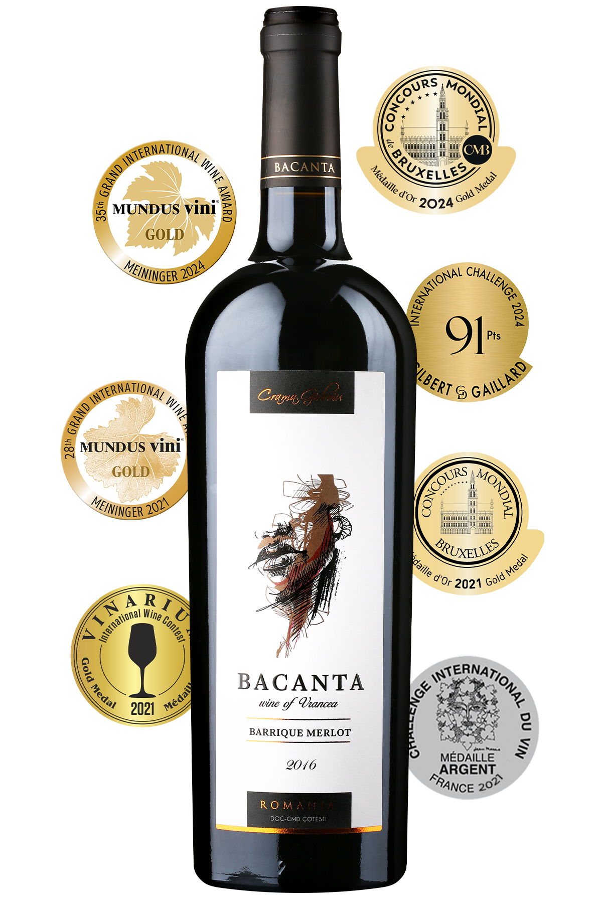 VINOTECA BACANTA MERLOT BARRIQUE 2016 – Vin roșu sec este expresia unui an de excepție pentru Merlot în DOC Cotești. Maturarea în barrique, urmată de păstrarea îndelungată în beciurile de la Dumbrăveni, a adăugat vinului note terțiare fine, elegante și perfect integrate. O ediție limitată, dedicată pasionaților de vinuri de excepție, cu profunzime, echilibru și caracter.