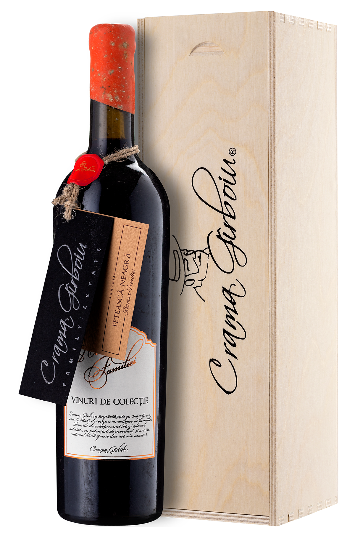 Vinoteca Rezerva Familiei Fetească Neagră 2017 – vin roșu sec premium dintr-un an de excepție pentru acest soi românesc de renume. Obținut dintr-un lot limitat, maturat în baric și învechit îndelung în sticlă în beciurile Cramei Girboiu din Dumbrăveni, acest vin oferă complexitate, profunzime și eleganță, fiind ideal pentru cadou sau ocazii speciale.